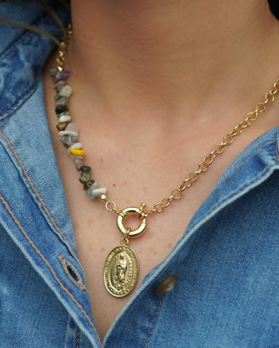 Collar Gold Virgen de Guadalupe Piedra Natural