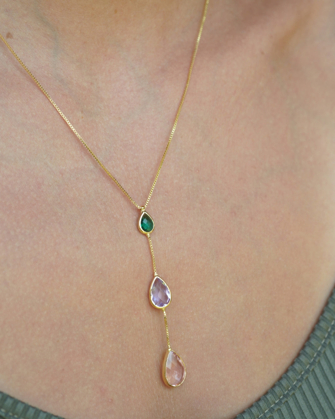 Collar Gold Cascada triple gota colores