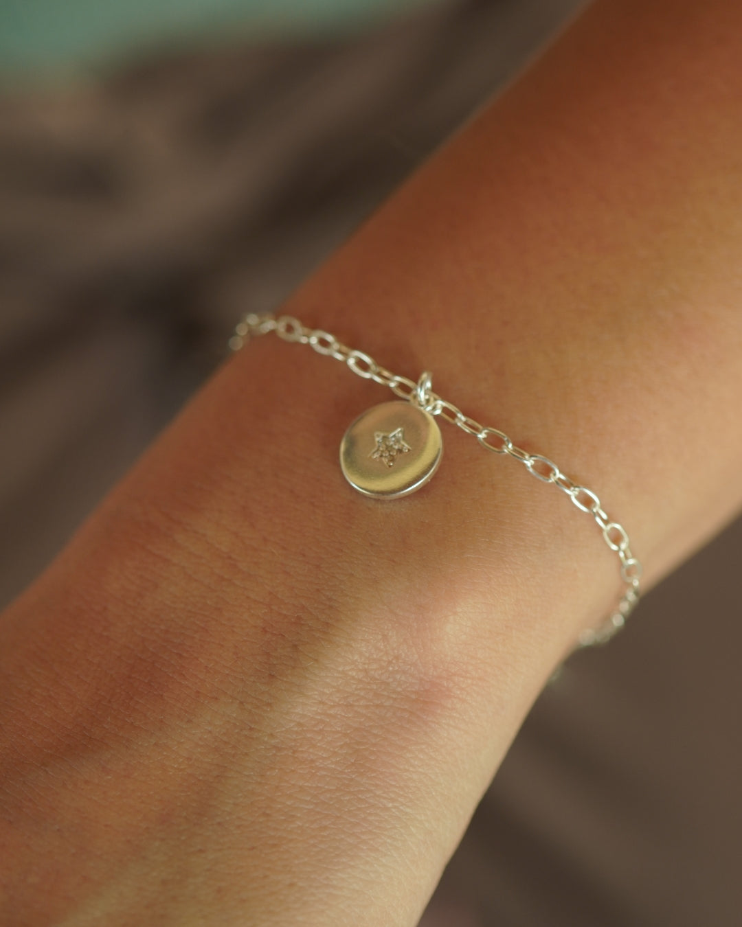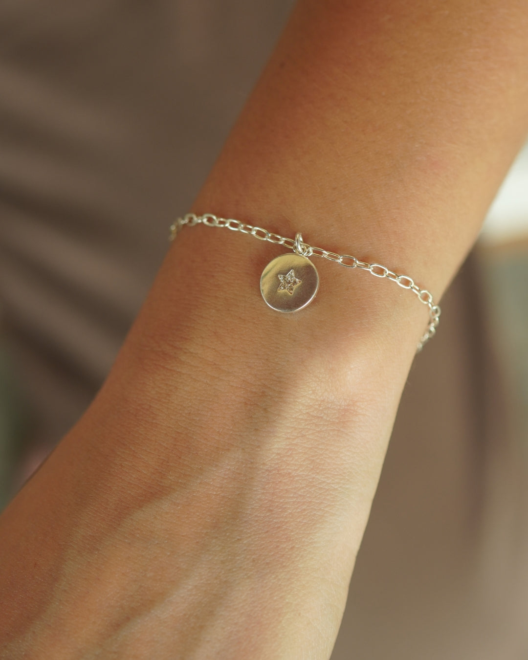 Pulsera enchapada en Plata 925, mide 15cm de largo, más un alargue de 3cm.