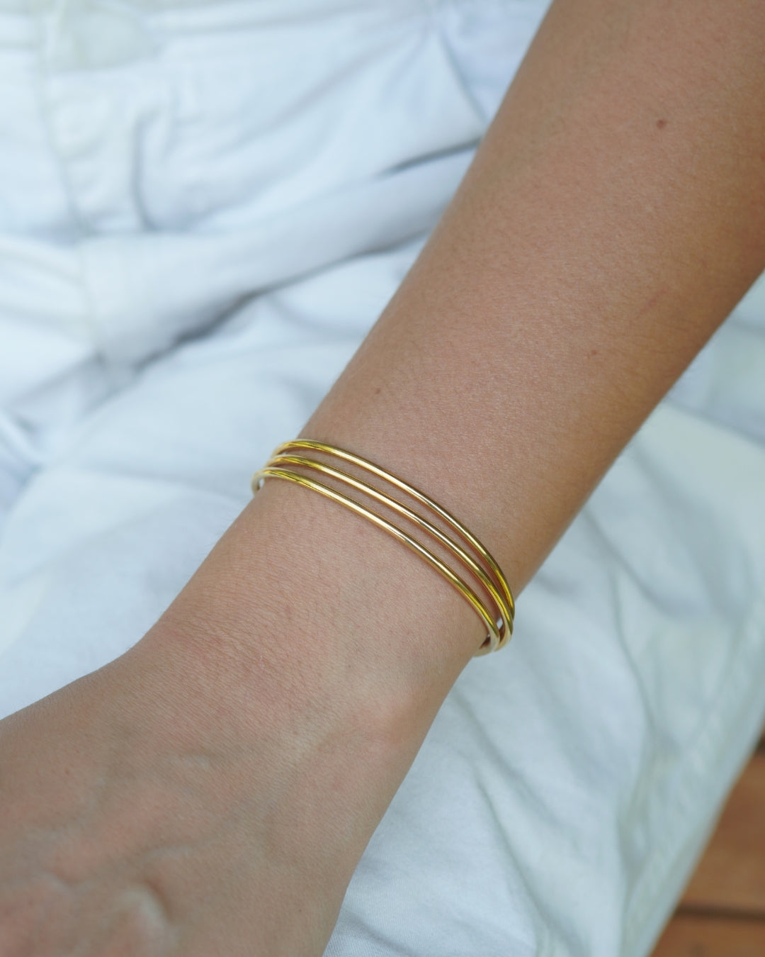 Pulsera Gold Esclava Triple ajustable, enchapada en oro 18k.